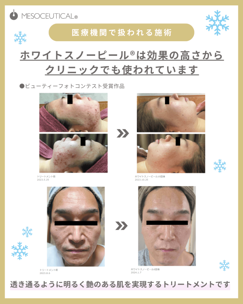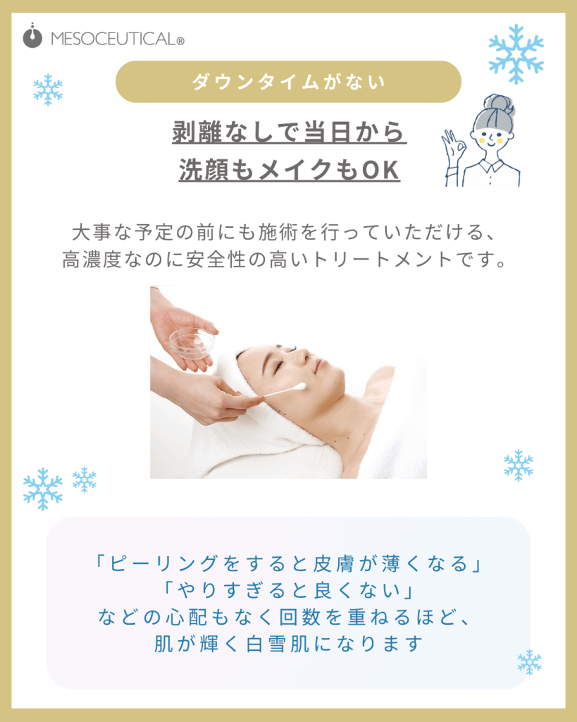 みやもと鍼灸整骨院では今話題の乳酸ピーリング、ホワイトスノーピールが受けられます。